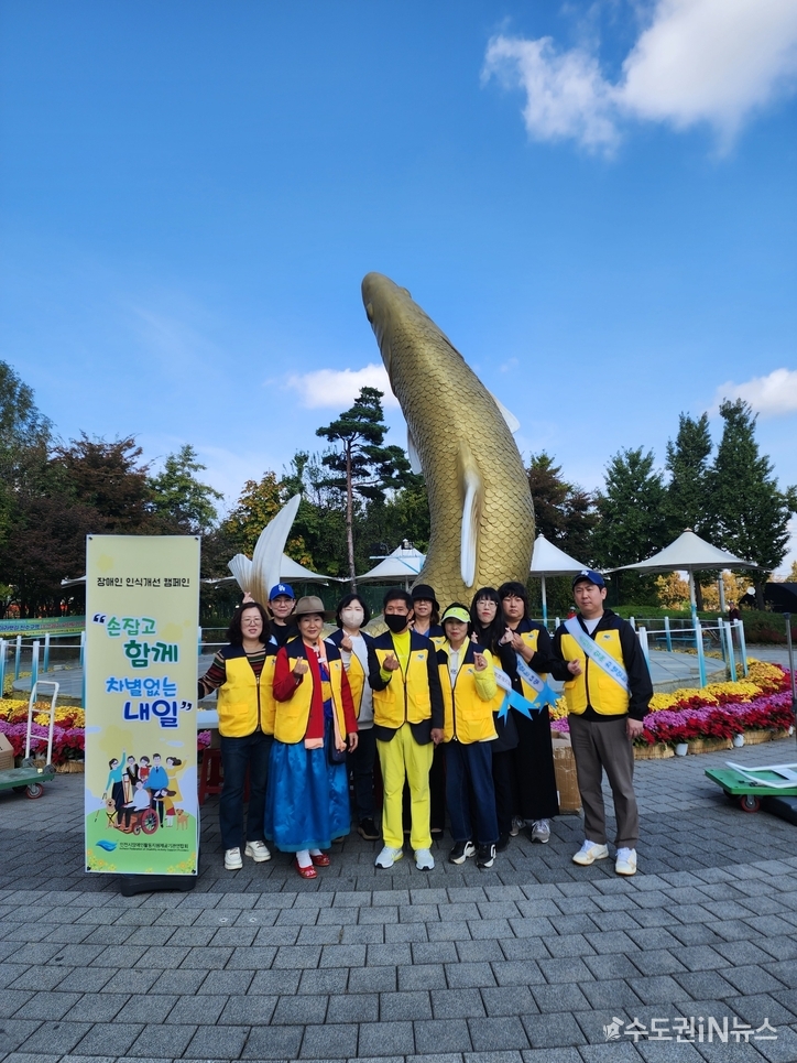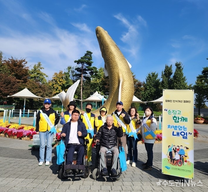 인천시 장애인 활동지원 제공기관 연합회 회장(이한덕)은 지난25일 회원들과 함께 인천 계양 경인아라온 국화축제 현장에서 생수와 시장가방을 배포하며 장애인 인식개선 캠페인 행사를 가졌다.