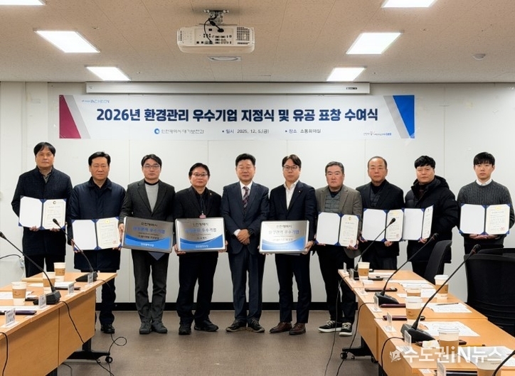인천광역시(시장 유정복)는 12월 5일 시청 소통회의실에서 ‘2026년 환경관리 우수기업 지정식 및 유공 표창 수여식’을 개최했다고 밝혔다.