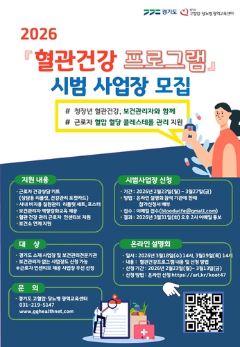 경기도가 올해 650개 사업장 근로자를 대상으로 '혈관건강 프로그램'을 운영한다며 3월 27일까지 사업장을 모집한다.