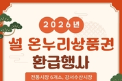 서울 강서구(구청장 진교훈)는 설 명절을 맞아 전통시장에서 '온누리상품권 환급행사'와 전통 놀이 체험 등 다양한 행사를 개최한다. 이번 행사는 명절 장바구니 부담을 덜고, 전통시장 소비를 촉진하기 위해 마련됐다. 전통시장 이용객은 일정 금액 이상을 구매하고 영수증을 인증하면, 구매금액에 따라 최대 2만 원까지 온누리상품권(지류)으로 환급받을 수 있다. 먼저, '방신전통시장(방화동로16길 31)'은 오는 5일(목)부터 6일(금)까지 이틀간 행사를 진행한다. 5만 원 이상 물품 구매 시 1만 원을 환급받을 수 있다. 지하철 5호선 우장산역 인근 '송화벽화시장(강서로 263-29)'은 5일(목) 하루 동안 4만 원 이상 구매 시 1만 원을 환급한다. 또, 6일(금)엔 3만 원 이상 구매한 고객 중 추첨을 통해 라면, 주방용품 등 경품을 증정한다. 화곡4동에 위치한 '남부골목시장(화곡동 943-7)'은 9일(월) 하루 동안 5만 원 이상 구매 시 1만 원을 환급한다. 14일(토)부터 이틀간은 투호 놀이, 제기차기 등 전통 놀이 체험과 상품 증정 행사도 함께한다. 유동 인구가 많은 지하철 화곡역 및 까치산역 근처의 전통시장 3개소에서는 9일(월)부터 10일(화)까지