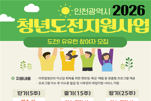인천광역시(시장 유정복)는 청년의 경제활동 참여와 노동시장 진입을 지원하기 위해 ‘청년도전지원사업’ 참여자를 1월 29일부터 9월 30일까지 모집한다고 밝혔다.