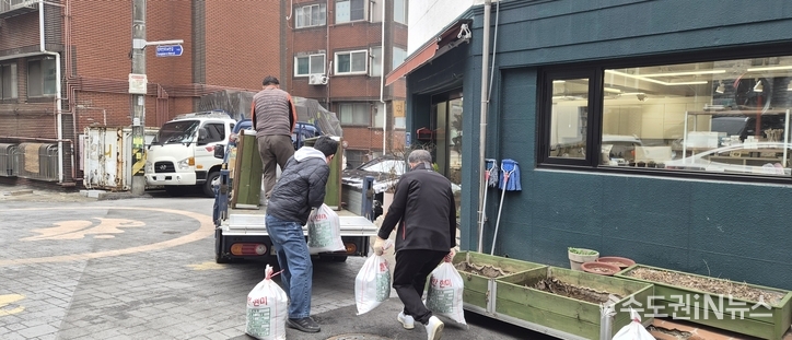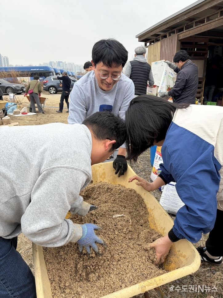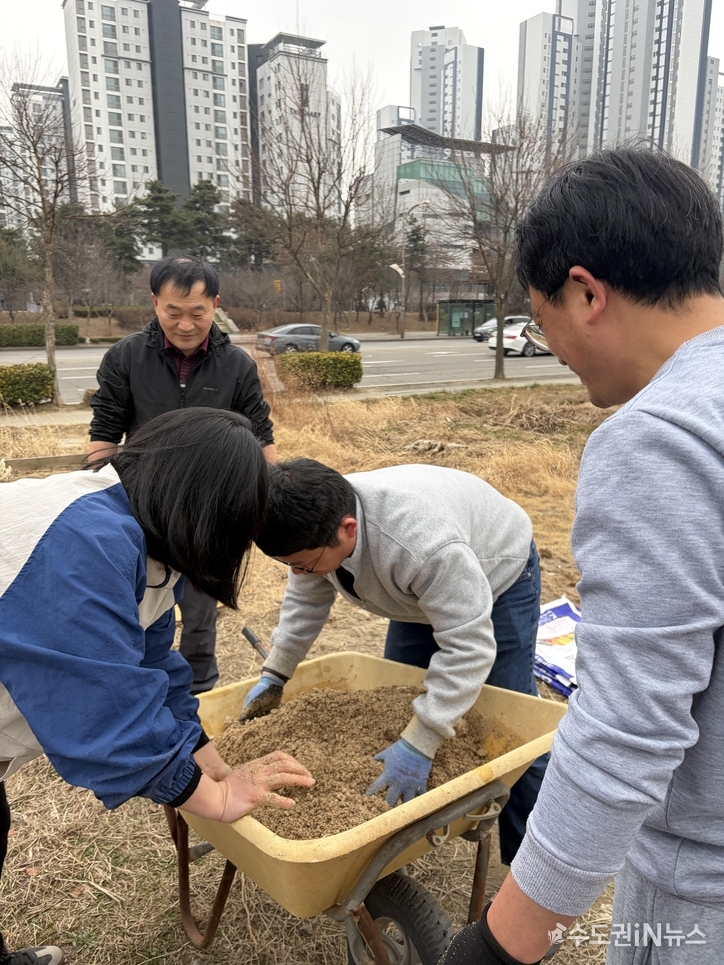 특히 이날 텃밭 조성에 쓰일 퇴비는 송도신도시 내 생태순환 도시텃밭 '연수이음텃밭'에서 조합원들이 직접 친환경 퇴비를 만들어 경로당에 기부하여 기후전환마을 조성의 의미를 더했다.